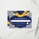 Navy Blue Rustic Wood Lace Sunflower Wedding RSVP Card