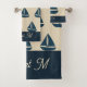navy blue sailboat & Monogram Beige Coastal home Bath Towel Set