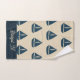 navy blue sailboat & Monogram Beige Coastal home bath towel set