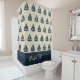 navy blue sailboat & Monogram Beige Coastal home Shower Curtain