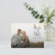 Gorgeous navy blue cursive script typography on the front of this designer postcard which you can upload into with your own engagement/save the date photo portrait. Easily and quickly personalise this designer professionally printed save the date postcard here and now by just typing over the example text and adding your own photograph. Elegant, chic, simple and classy navy script/cursive typography