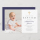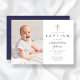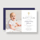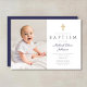 Navy Blue Script Cross Boy Photo Baptism Invitation