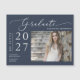 Yay! Your middle school, high school, college/university, tech school, or graduate program student did it and is graduating! Celebrate one of their life's precious moments and send out this graduation announcement magnetic card. The magnet features a simple, elegant modern minimalist style with beautiful calligraphy script on a navy blue background and the graduate's photo. Just customise and replace the text and photos in the personalisation box.