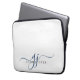 Navy Blue Script Monogram Initials Minimalist Laptop Sleeve
