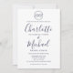 Navy Blue Script Nautical Knot Photo Wedding Invitation