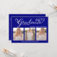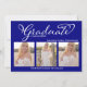 Navy Blue Script Photo Collage Graduation Card