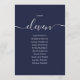 Navy Blue Script Table Number 11 Seating Chart