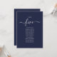 These elegant, navy blue, signature script double-sided table number 5 seating chart cards are perfect for all celebrations. Designed by Thisisnotme©