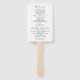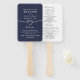 Minimalist, elegant, simple calligraphy navy blue wedding program hand fans with silver rope heart and modern script.