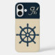 navy blue ship wheel & Monogram Beige Coastal home Case-Mate iPhone Case