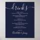 This elegant script minimalist navy blue drinks menu sign is perfect for your wedding celebration. Designed by Thisisnotme©
