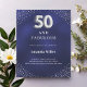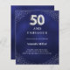 A navy blue, uneven coloured background. Decorated with faux silver corners. Personalise and add a name and party details.