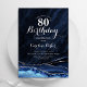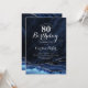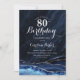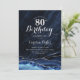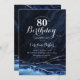 Navy Blue Silver Agate Marble 80th Birthday Invitation