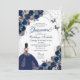 Navy Blue & Silver Butterfly Princess Quinceanera Invitation