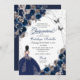 Navy Blue & Silver Butterfly Princess Quinceanera Birthday Invitation