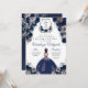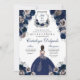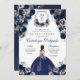Navy Blue & Silver Floral Elegant Quinceanera Birthday Invitation