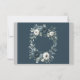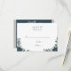 A sophisticated wedding featuring a navy blue watercolor floral wreath adorned with lush peonies, roses, and eucalyptus greenery in shades of navy blue, green, and ivory. The design is enhanced by a silver-grey printed box beneath the wreath with modern font text layout. The back of the invitation continues the theme with a matching floral arrangement for a cohesive and elegant look. Perfect for couples seeking timeless and classy wedding stationery.