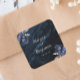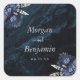 Navy Blue Silver Floral Wedding Square Sticker