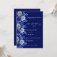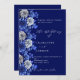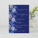 A navy blue background, decorated with blue and silver coloured flowers. Personalise and add your names and details.