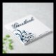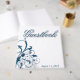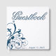 Navy blue, silver foil overlay flourish wedding guestbook. Features date on front cover and wedding date on spine.