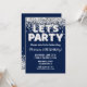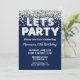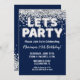 Navy Blue Silver Glitter Birthday Party Invitation