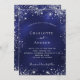 A navy blue background, decorated with faux silver glitter dust. The blue colour is uneven. Personalise and add your names and details.