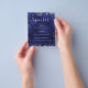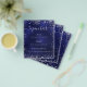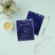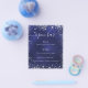 A navy blue background, the blue colour is uneven. Decorated with faux silver glitter, sparkles. With the text: Open bar. Personalise and add your bar menu. White text.