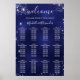 A classic navy blue background, the blue colour is uneven. Decorated with faux silver glitter dust. Personalise and add the name of the bride and groom, add your guests names.