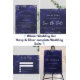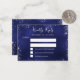 A navy blue background, the blue colour is uneven. Decorated with faux silver glitter, sparkles. Personalise and add the reply by date and your names.