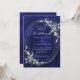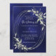 Navy blue silver greenery wedding invitation