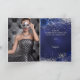 Navy blue silver photo floral birthday thank you card