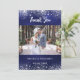 Celebrate your special day and express your heartfelt gratitude with our Custom Photo Wedding Cards, elegantly designed with a sophisticated navy blue, uneven coloured background and adorned with faux silver glitter. Perfect for sharing your favourite wedding memories, these cards are both stylish and personal, offering a unique way to thank your guests. Personalise and add your photo and thank you note. White text.