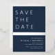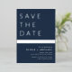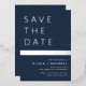 Navy Blue Silver Stripe Save the Date Elegant