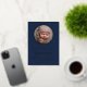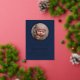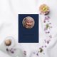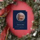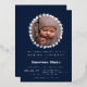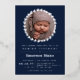 Silver foil and navy blue naming ceremony invitation with a photo of your baby inside a simple silver wreath. Photo naming ceremony invitation in silver and navy blue with a charming leafy wreath.