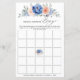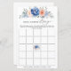 Navy blue blush pink floral bridal shower bingo featuring elegant bouquet of navy blue, royal blue , white , blush garden rose, hydrangea, and sage green eucalyptus leaves. Please contact me for any help in customisation or if you need any other product with this design.