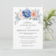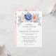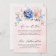 Navy Blue Slate Dusty Blush Pink Floral Wedding Invitation