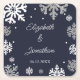 Navy Blue Snowflakes Winter Wedding Square Paper Coaster