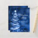 Elegant Christmas Holiday Party invitation with Program and Menu featuring Sparkling Xmas Tree in Navy Blue.
