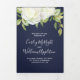 An elegant, floral wedding program with a beautiful arrangement of watercolor white peony flowers and greenery. Shown with a navy blue background colour which can be customised to match your wedding theme. Just select the 'customise it' button to see additional design options.