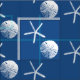 Navy Blue Starfish & Sand Dollar Beach Theme Fabric design.