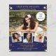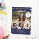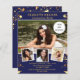 Create your own unique photo collage. Use four, 4 of your favourite photos. Personalise and add a name and party details. Navy blue background, golden stars and text.
