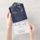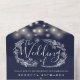 Navy Blue String Lights Foliage Wedding All In One Invitation