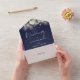 All in one navy blue wedding invitation featuring pretty string lights, floral greenery and elegant typography. The invitation includes a perforated RSVP card that can be individually addressed or left blank for you to handwrite your guest's address details. Designed by Thisisnotme©