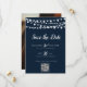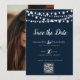 Navy Blue String Lights Modern Script Save the Date Template for you to customise. Add your beautiful, photo to the back of the Invitation/Announcement.