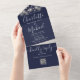 Navy Blue String Lights QR Code Monogram Wedding All In One Invitation