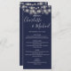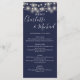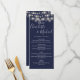 Elegant navy blue wedding menu card featuring pretty string lights and signature style names. This modern menu card can be personalised with your information in chic white lettering. Designed by Thisisnotme©