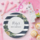 Navy Blue Stripe Lemon Citrus 30 Any Age Birthday Paper Plate
