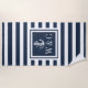 Navy Blue Stripe Nautical Anchor Monogram Beach Towel