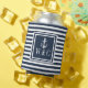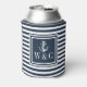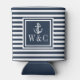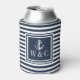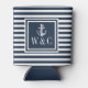 Navy Blue Stripe Nautical Anchor Monogram Can Cooler