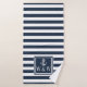 Navy Blue Stripe Nautical Anchor Monogram Initials Bath Towel Set